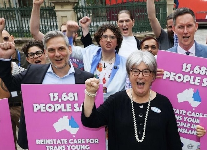 Held a rally outside Queensland Health Minister Tim Nicholls’ office demanding he reinstate gender affirming care for trans youth.